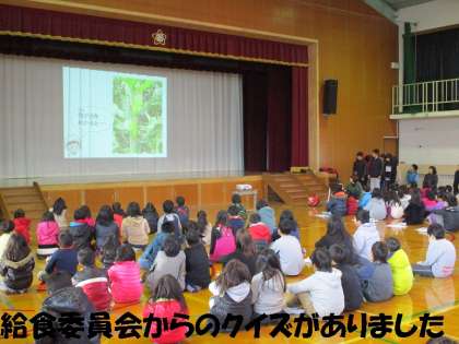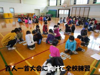 そのあと,給食委員会の楽しい野菜クイズがあり,そして,百人一首大会に向けて全校れんしゅうをしました。