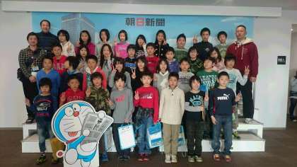 朝日新聞社に到着しました。朝日新聞の歴史や東京と大阪の新聞の違いなどの話を聞いています。