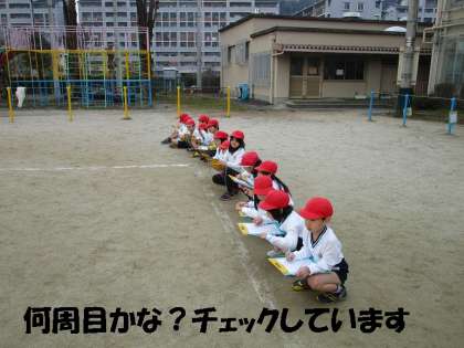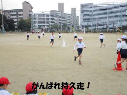 寒い中の体育でしたが,元気よく7分間の持久走をしました。まだまだ,ペースを守れず,途中で歩いてしまう1年生ですが,2月に入ってから,走り続ける時間が長くなってきています。