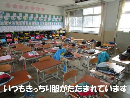 また,体育の時間の教室は,いつもきれいに服がたたまれていて気持ちがいいです。