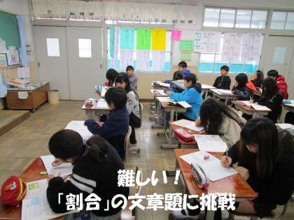 算数では,まとめの学習に入っていますが,子どもたちの頭を悩ませている問題は,「割合」の文章題です。