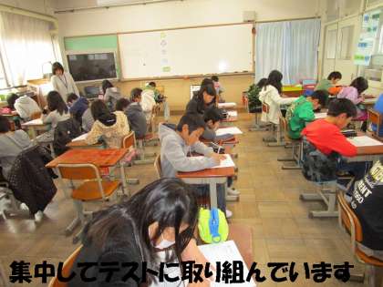 5年生の教室をのぞくと,静かにテストをがんばっていました。