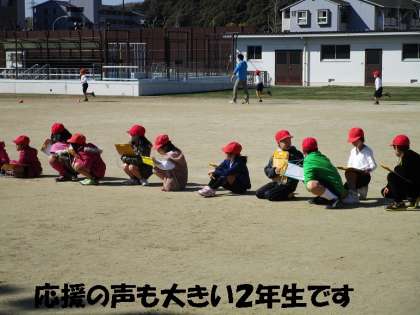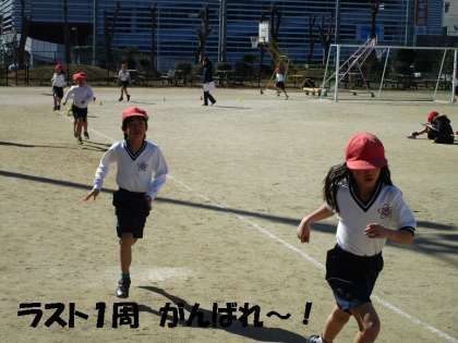 「もうしんどくてだめだ」と思った時に,先生や友だちの「がんばれ〜!」の声が聞こえてきます。その声に励まされて,全員最後まで走りぬきました。