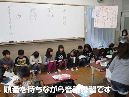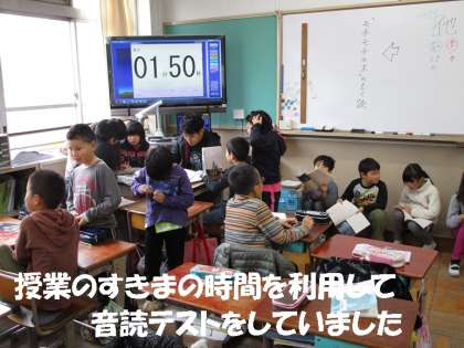 授業と授業の間の時間を有効に使っての「音読テスト」です。
