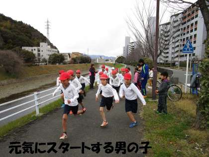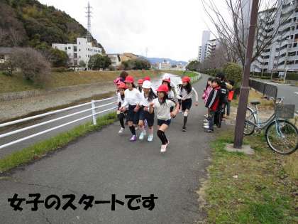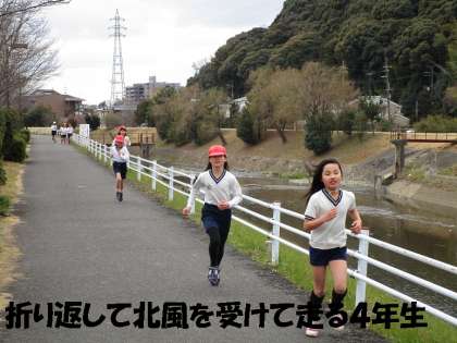 4校時に,3年生といっしょに持久走大会のコースの試走に行きました。さすがに山科川堤防は寒風が吹き抜け,寒かったですが,折戸公園でしっかりアップして走りました。
