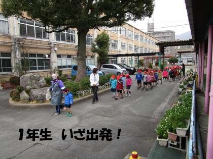 2年生に続いて,1年生も気合を入れて出発しました。