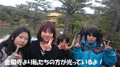 金閣寺をバックにピース!私たちの方が光り輝いているのでは??