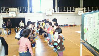 お別れフレンドタイムのフィナーレは、卒業していく6年生からのメッセージ、そして、在校生からのお祝いプレゼントをおくりました。最後はみんなで歌を歌って終わりました。