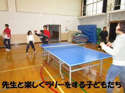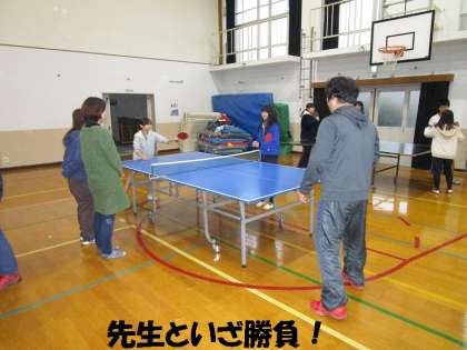 子どもたちVS先生たちで,いざ勝負!卓球が得意な先生もいて,楽しい中にも真剣勝負をしていました。