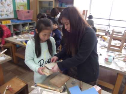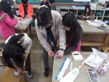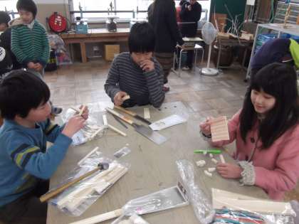 4年生では,図工の時間に「ギコギコ・トントン」を学習しています。今日は,木や板を選び,のこぎりを使って工作していました。