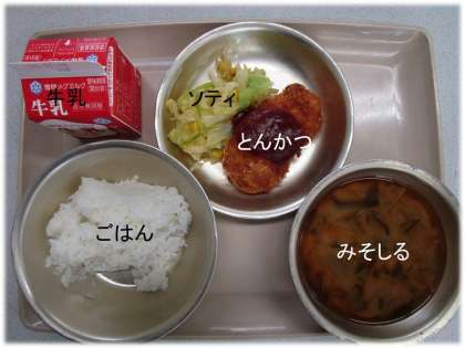 「ごはん」「みそしる」「とんかつ」「ソティ」「牛乳」