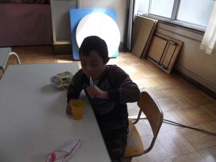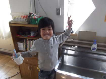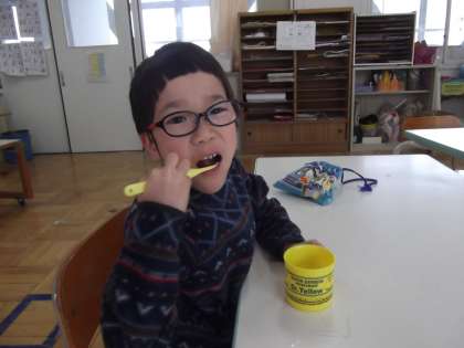 給食終了後,毎日,丁寧に歯みがきをしています。今日も全員上手く歯みがきをすることができました。