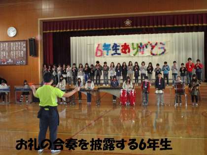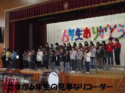 最後は,6年生からのお返し(お礼)の言葉,演奏です。さすが6年生,きれいな音色をリコーダーと迫力ある合奏を聞かせてくれました。