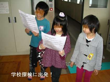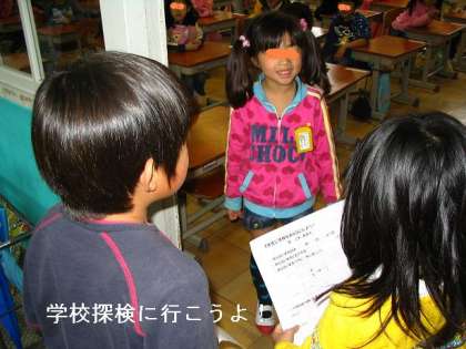昨日3校時に生活科の「学校探検」の学習をしました。1年生をさそって学校探検(案内)をしました。