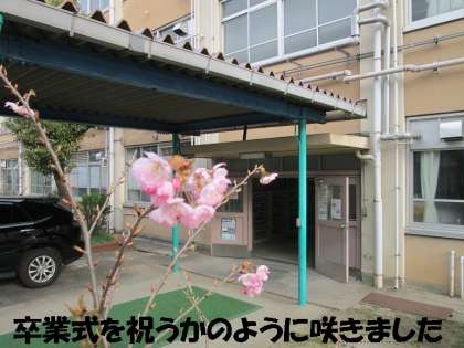 枝にはつぼみがいっぱいついていますので,卒業式には,もっと多くの花が咲いて,6年生の卒業をお祝いしてくれるでしょうね。