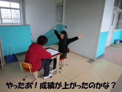 子どもたちがアルバムやメッセージ交換に夢中になっている時間を利用して,担任の先生が一人一人呼んで,最後の通知票を渡していました。