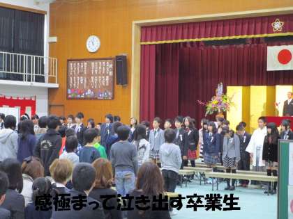 門出の言葉は,盛り上がりが最高潮!感極まって泣き出す卒業生が続出。