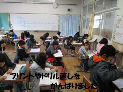 最後のまとめのお直しをがんばりました。プリント(テスト)やドリル等で×をもらったところをやり直していました。