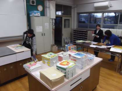 平成27年度に使用する教材を選んでいます。今年度も子ども達に「分かった」「できた」があふれる授業実践していきます。