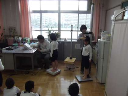 2年生は,今年度初めての身体計測です。身長,体重,座高を計測します。前回の計測よりみんな大きくなっているようです。