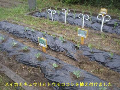 これで,「ジャガイモ」「ダイコン」「ニンジン」「トウモロコシ」「スイカ」「キュウリ」の6種類です。残りは,「キャベツ」「ミニトマト」「ピーマン」「さつまいも」「ナス」そして「米つくり」です。