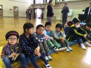 池田東小学校に到着しました。春のふれんどタイムの始まりを待っています。
