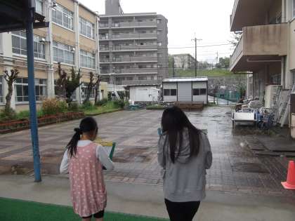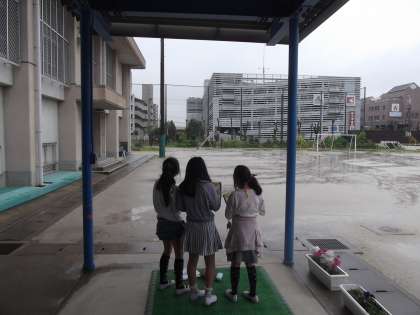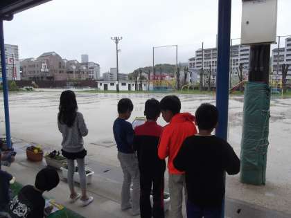 理科の時間に「天気の変化」を学習しています。今日は,天気の様子を観察しています。