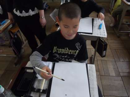 今年度,初めての習字をしました。久しぶりの習字だったのでなかなか思うように字が書けなかったようです。