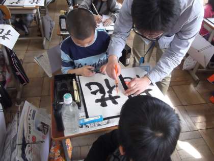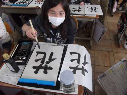 昨日に続き書写がありました。今日は,「花」の字を練習していました。