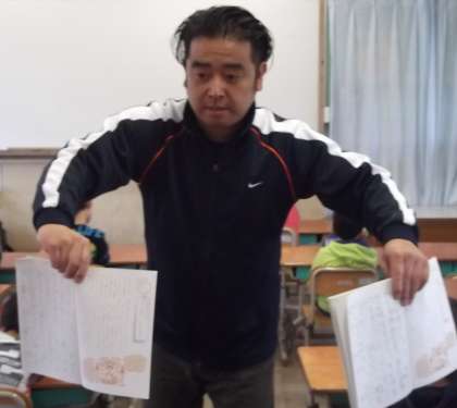 国語の時間に漢字ノートの書き方について確認していました。