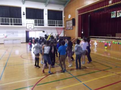 1年生を迎える会のリハーサルをしていました。とても面白い発表になっています。本番が楽しみですね。