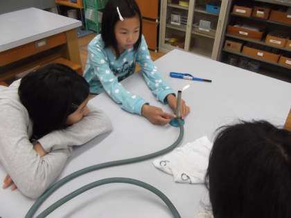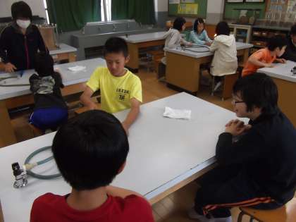 理科の時間に「ものの燃え方」を学習しています。今日は,ガスバーナーの使い方の練習をしていました。