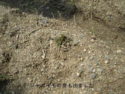 畑の土づくりからはじめて半月,そして,種,種イモを植えて約1週間で芽が出ました。5年生のがんばりの成果です。でもこれからの世話が大変です。みんなで大事に育てようね。