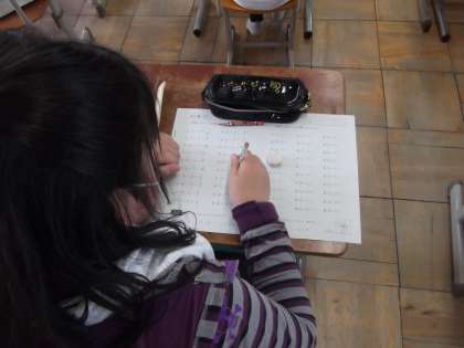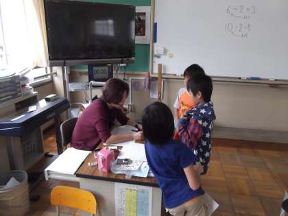 3年生は,算数の時間に「わり算」を学習しています。今日は,わり算の練習問題をしていました。