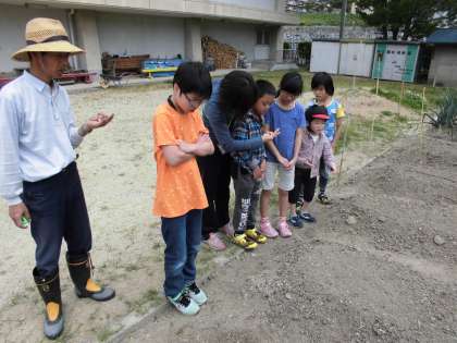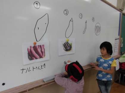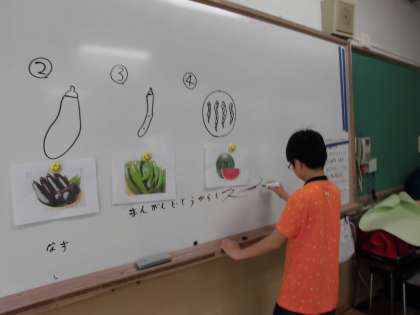 今年度、3くみの畑で育てる野菜をイラストヒントを