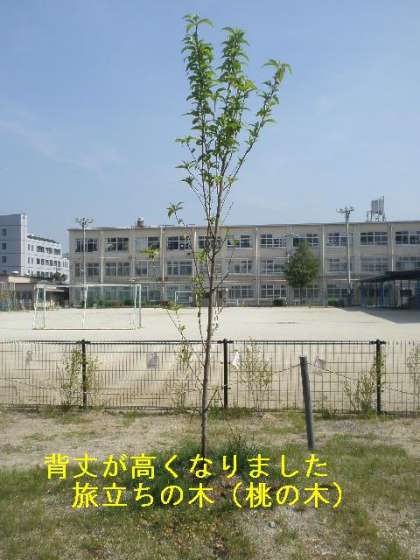 卒業生のみなさん!旅立ちの木「桃」も背が高くなりましたよ