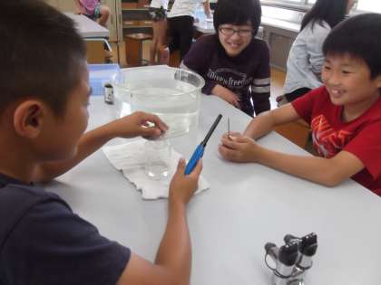 理科の時間に「ものの燃え方」を学習しています。今日は,酸素の働きを調べる実験をしていました。