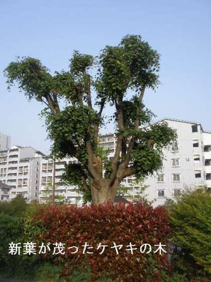 正門横に大きなケヤキの木があります。昨秋に落ち葉対策として自治町内会連合会の役員さんに枝うちをしていただき,すべての葉を落とし幹だけになっていました。