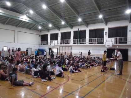 校長先生のお話の後に感謝状贈呈式が行われました。京都市醍醐中央図書館主催の「子ども作品展」に本校からも何点か出展しました。今日は,京都市醍醐中央図書館より感謝状が子ども達に渡されました。