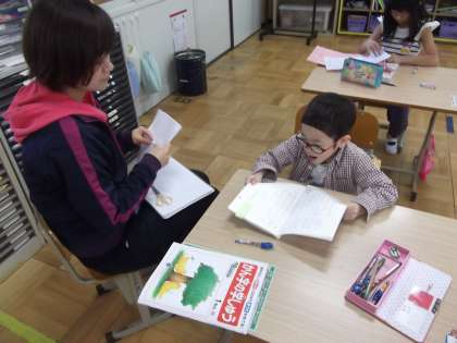 国語の時間に漢字の練習やひらがな練習,音読練習をしていました。