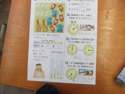 算数の時間に「ひょう・グラフと時計」を学習していました。今日は,そのテストをしていました。テストの結果は・・・