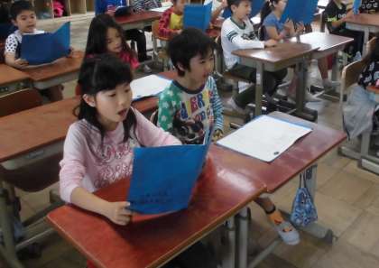 3年生は,朝学習の時間に音読練習をしていました。