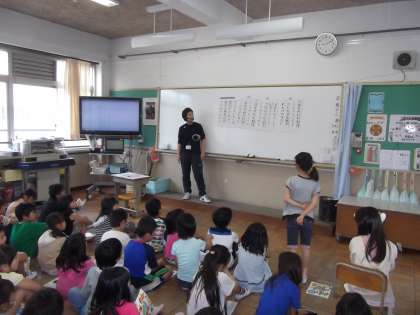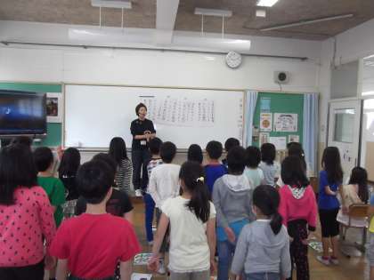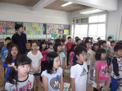 1,2組合同で歌「はるのおがわ」を歌う練習をしていました。きれいな歌声で歌うことができました。