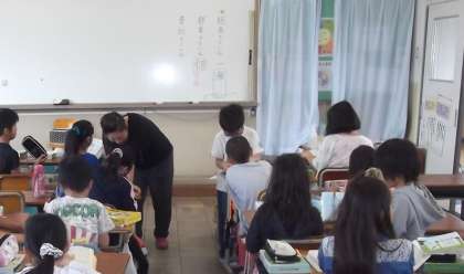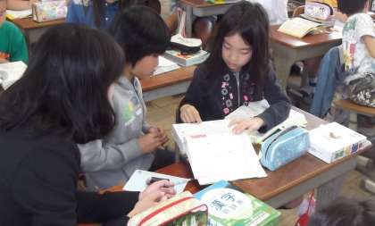 国語の時間に漢字辞典の使い方を練習していました。今日は,「イ」の部首を使う漢字を調べていました。