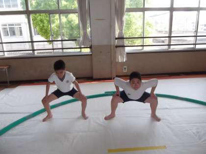部活動の日です。今日は,相撲・卓球・バスケットボール部が練習を行っていました。