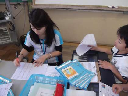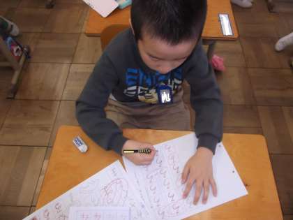 1年生は,朝学習で「ひらがなの」練習をしていました。とても上手に「ひらがな」を書くことができました。