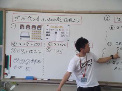 算数の時間に「文字と式」を学習しています。今日は,式が何を表しているかを考えていました。