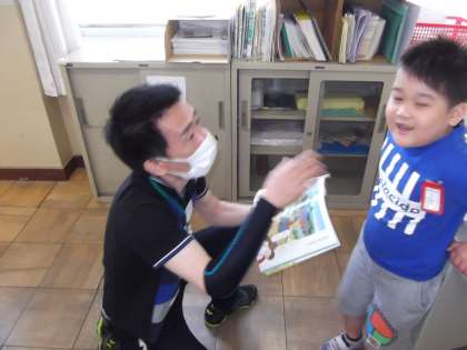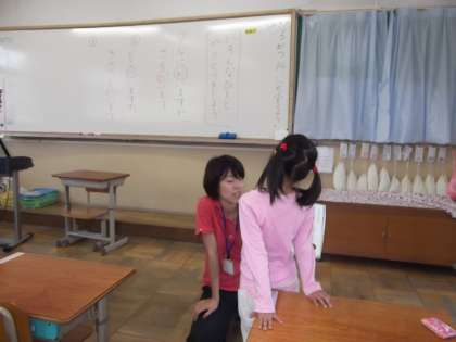 国語の時間に「えをみてはなそう」を学習しています。今日は,教科書の絵をみていろいろな人と絵について質問等のやりとりをしていました。