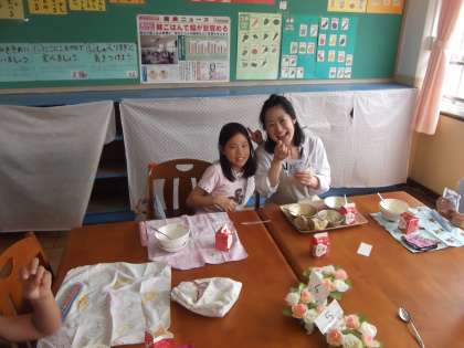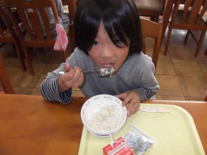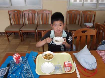 4校時に食に関する学習後,ランチルームで給食を食べていました。みんなとても美味しそうに食べていました。