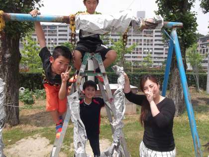図工の時間に「布でつつもう」を学習しています。いろいろなものを布でまいて作品をつくります。今日は,布の代わりに新聞紙を使っています。